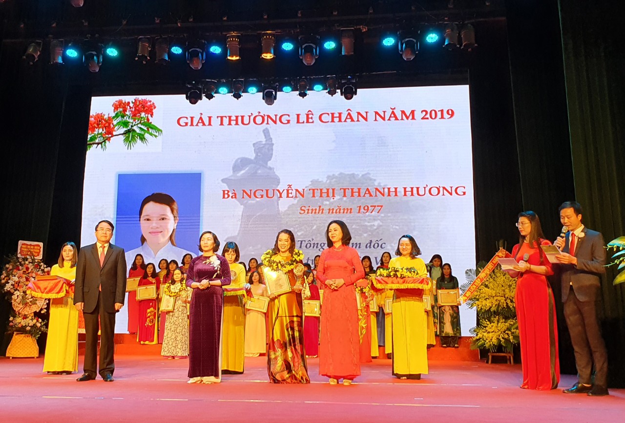 Bà Nguyễn Thị Thanh Hương - Tổng Giám đốc Công ty Cổ phần Vilaco vinh dự được nhận giải thưởng cao quý này. Giải thưởng Lê Chân được trao từ năm 2006 nhằm tôn vinh những tấm gương phụ nữ của thành phố Cảng có thành tích tiêu biểu, xuất sắc trên các lĩnh vực, trong phong trào thi đua của Hội LHPN Hải Phòng. Bà Nguyễn Thị Thanh Hương - Tổng Giám đốc Công ty Cổ phần Vilaco là một trong 8 gương mặt được trao giải năm 2020, là những cán bộ nữ tận tâm với nghề, say mê sáng tạo; những nữ doanh nhân năng động, bản lĩnh trên thương trường và những trái tim giàu nghị lực...
