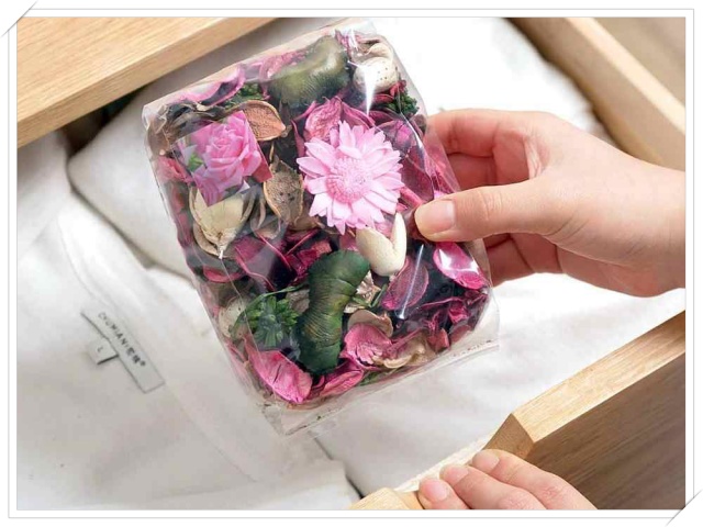 Lúc này, bạn chỉ cần một chiếc túi thơm quần áo để khắc phục. Bạn có thể tự may túi vải nhỏ, đặt vào một chút hoa như oải hương, hoa nhài hay cây cỏ roi ngựa khô trộn thêm với tinh dầu và đặt vào tủ quần áo. Mùi thơm từ túi thơm quần áo sẽ lan tỏa khắp tủ quần áo của bạn đầy ắp hương hoa tươi mát và quý phái.