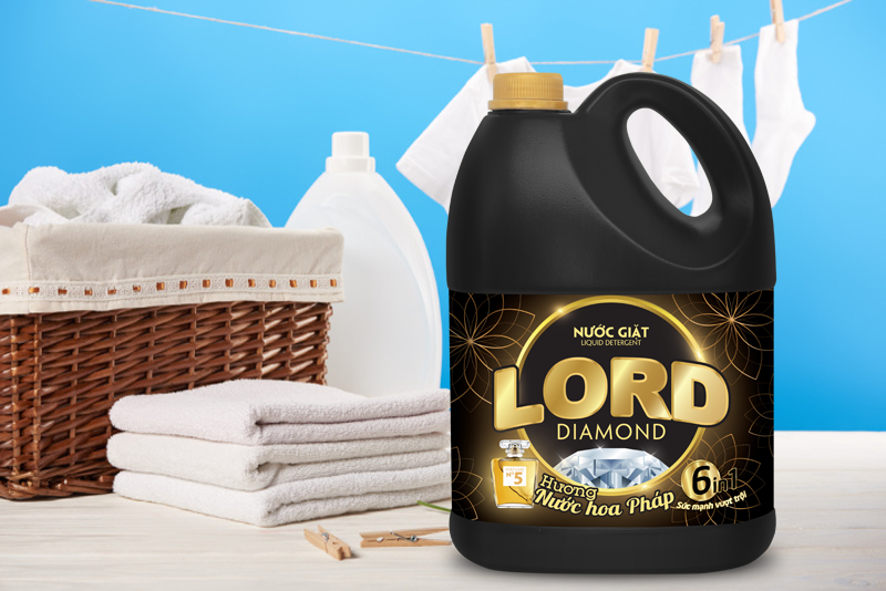 Nước giặt Lord Diamond hương nước hoa Pháp với công thức cải tiến mới, tan nhanh trong nước và thấm sâu vào từng sợi vải giúp dễ dàng giặt sạch quần áo, giữ màu sáng đẹp như mới và ngăn chặn vết bẩn bám trở lại lên quần áo. Sản phẩm được quản lý bằng hệ thống quản lý chất lượng đạt tiêu chuẩn ISO 9001:2015.