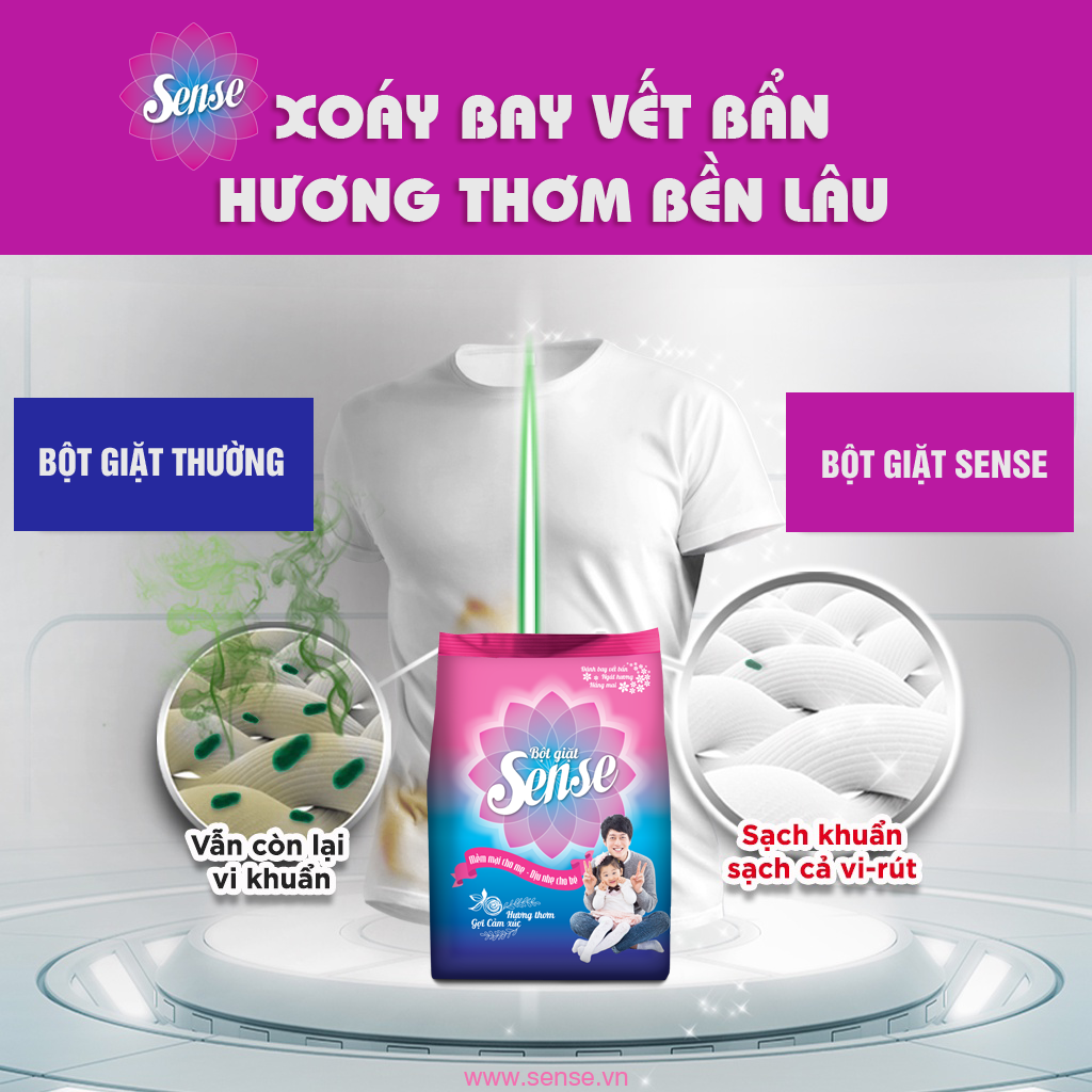 Bột giặt Sense đánh bay vết bẩn - Mềm mại cho mẹ & Dịu nhẹ cho bé