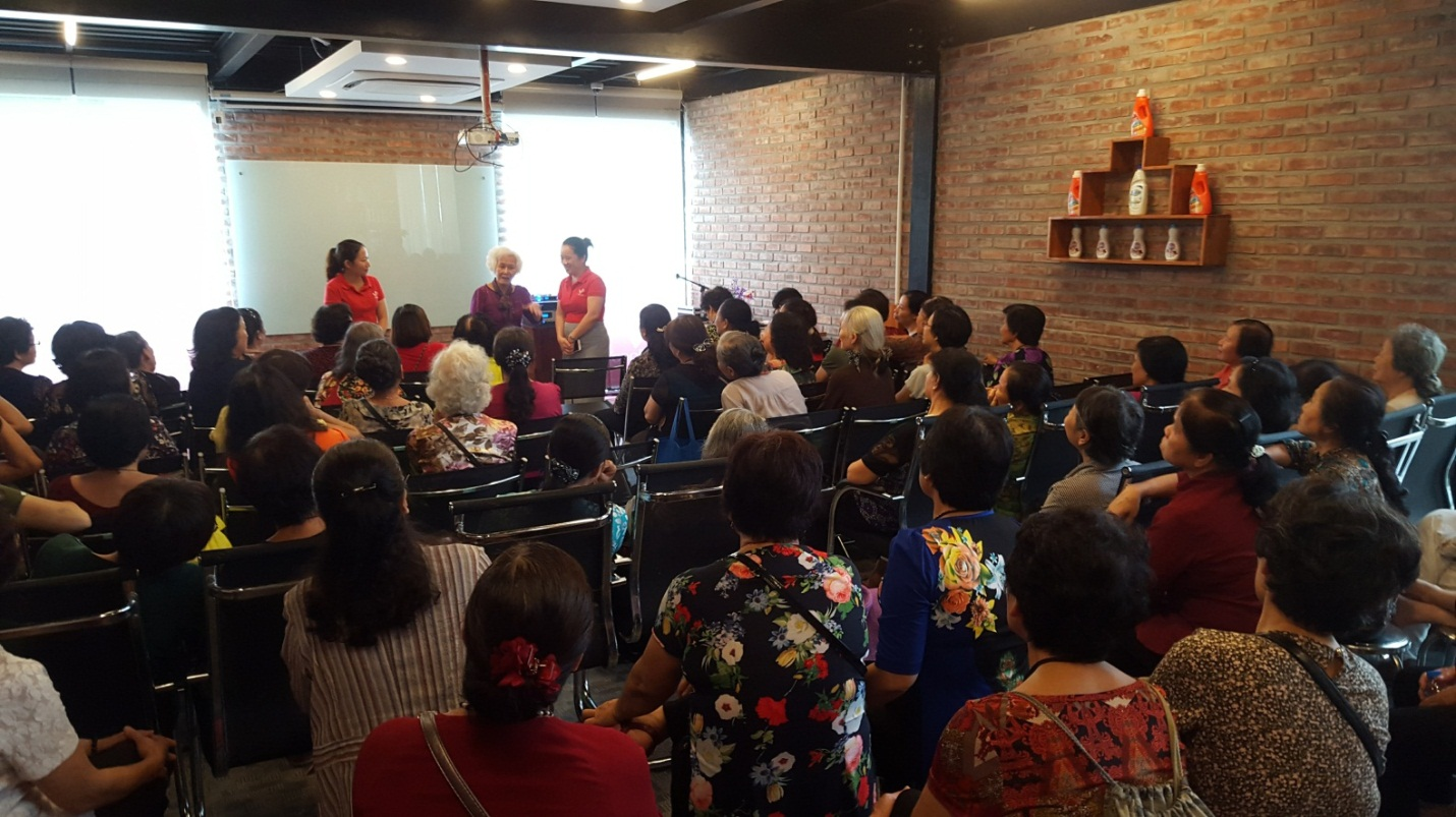 Các chị em phụ nữ vô cùng hứng thú khi được giao lưu về thông tin sản phẩm mình đang dùng và cùng nhau giao lưu một vài tiết mục văn nghệ được chuẩn bị đến từ phía công ty và câu lạc bộ.