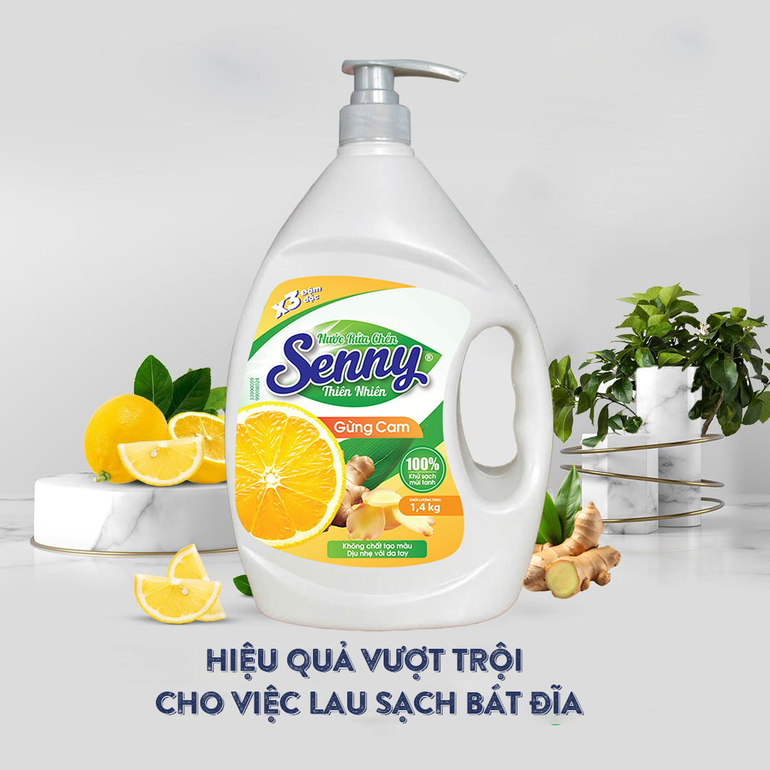 Sạch Dầu Mỡ – Bàn Tay Vẫn Mềm Mại Với Nước Rửa Chén Senny Gừng Cam