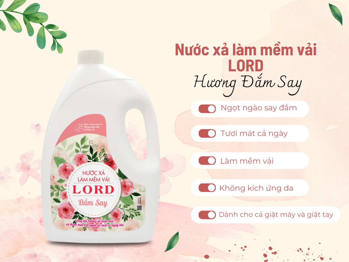 Với những đặc trưng nổi bật này, Lord Hương Đắm Say không chỉ mang lại cảm giác mềm mại mà còn khiến quần áo của bạn trở nên thơm ngát và quyến rũ trong từng cử động.