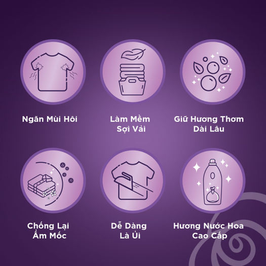 - Làm mềm từng sợi vải, giữ quần áo luôn mềm mại, êm ái mỗi khi chạm vào.