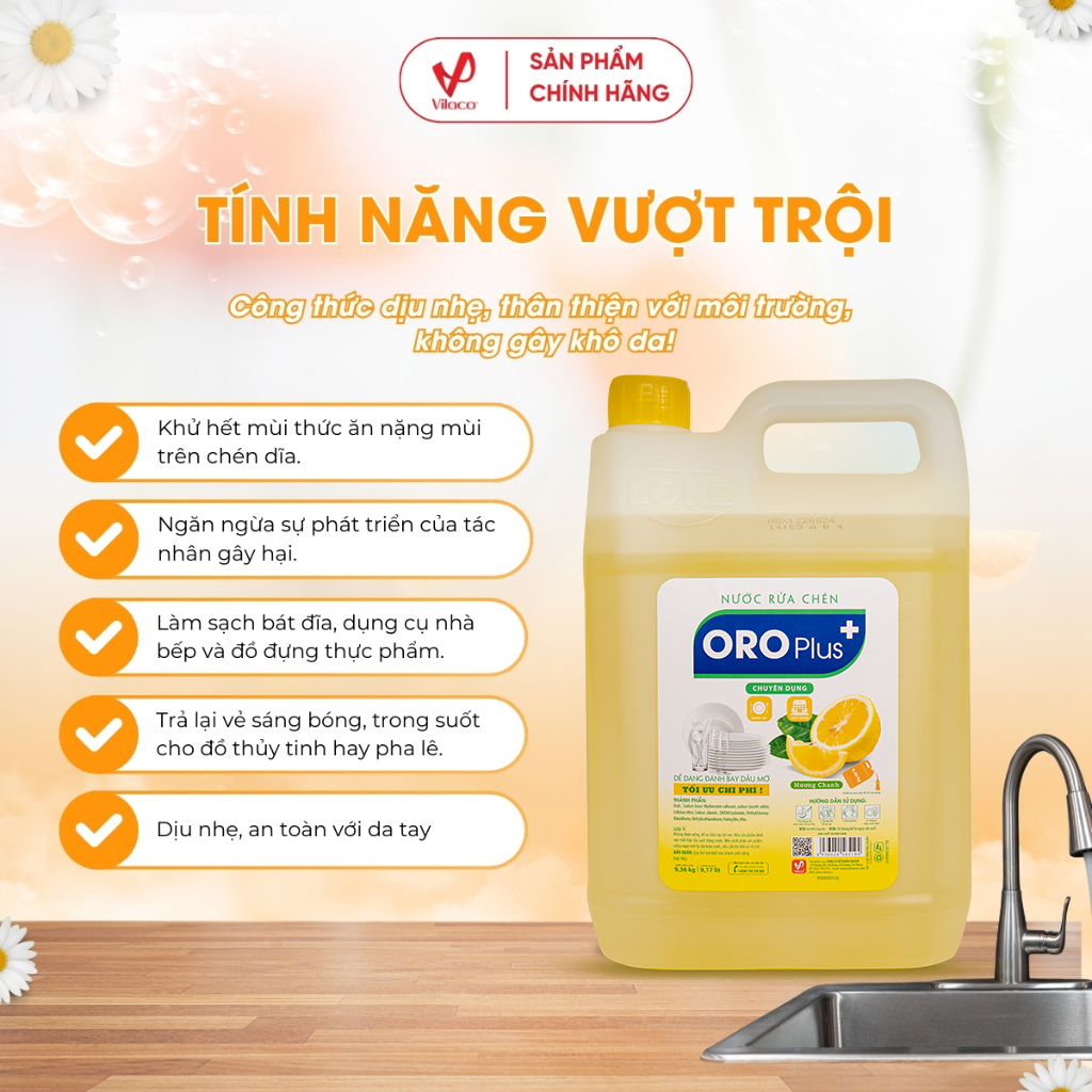 An Toàn Cho Sức Khỏe: Được sản xuất với thành phần an toàn, Nước Rửa Chén Oroplus Hương Chanh giúp bạn yên tâm sử dụng trong mọi gia đình, đảm bảo không để lại dư lượng hóa chất trên chén đĩa.