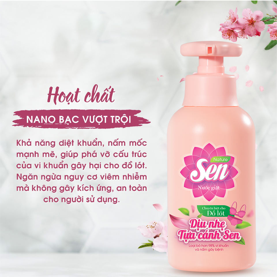 Giặt sạch – Khử mùi – Diệt khuẩn không còn là điều khó khăn khi bạn có Nước Giặt Đồ Lót Sen – giải pháp giặt giũ dịu nhẹ, an toàn nhưng vô cùng hiệu quả dành riêng cho đồ lót.