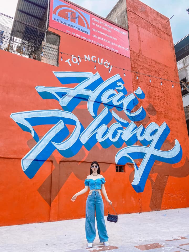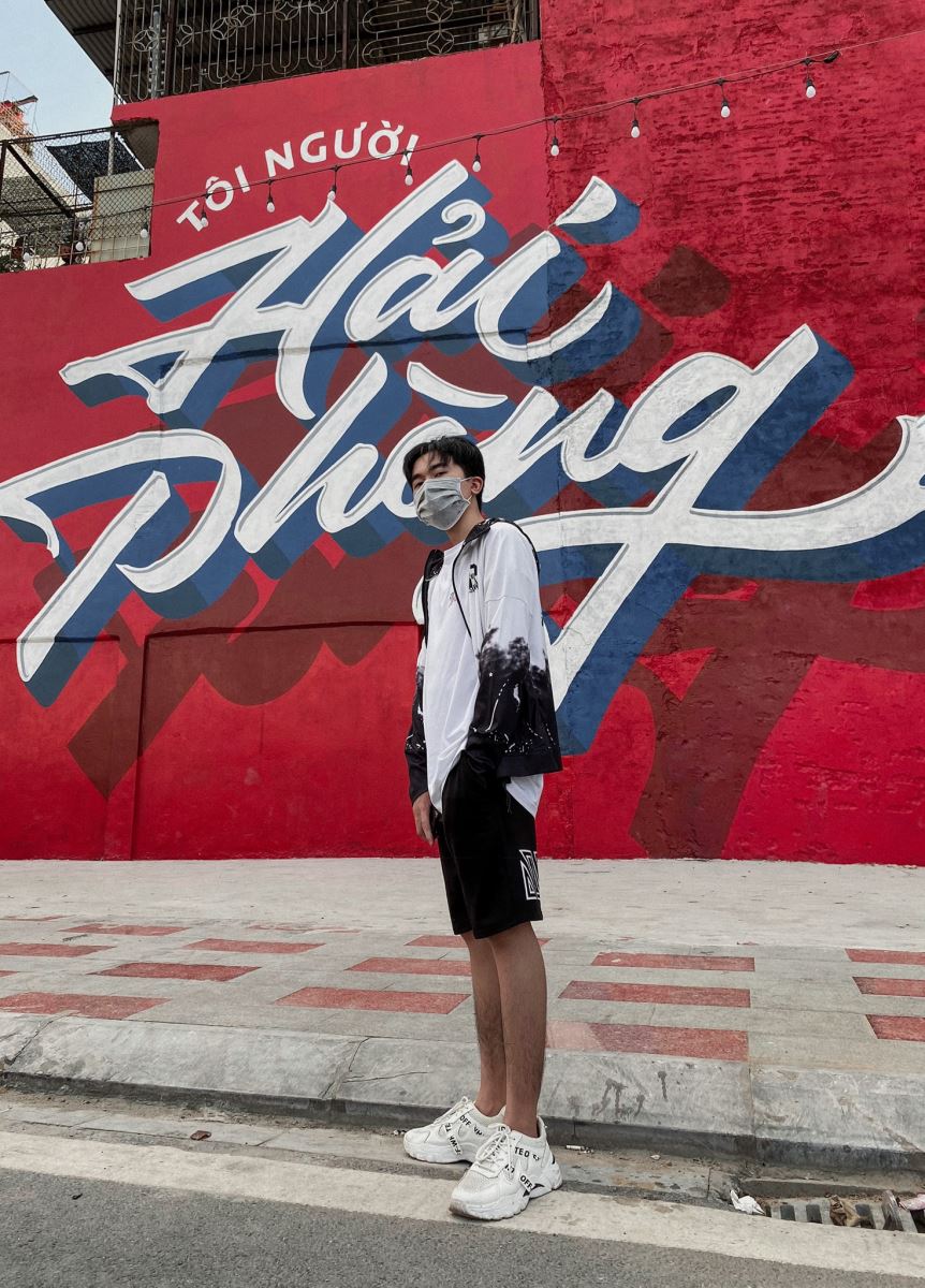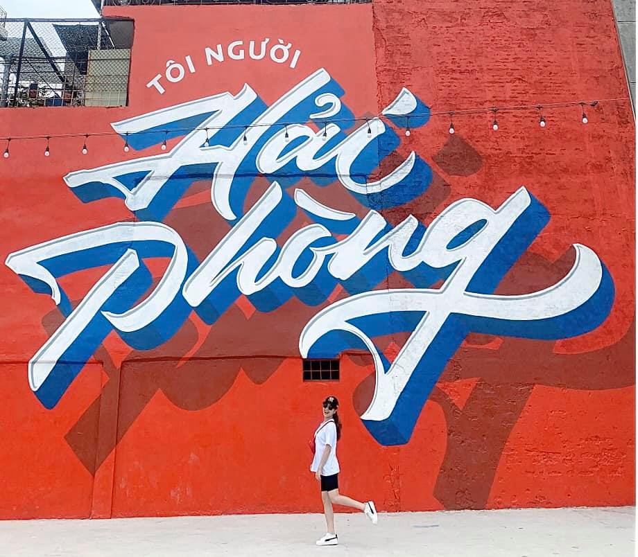 Bức tranh” Tôi người Hải Phòng” trên nền đỏ vô cùng ấn tượng được vẽ