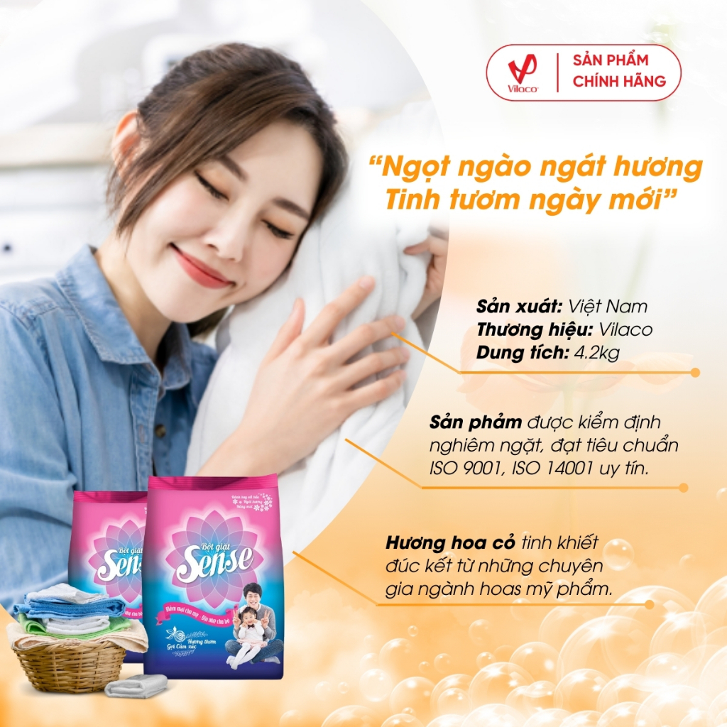Có bao giờ bạn tự hỏi tại sao chiếc áo khoác của người yêu thương lại có sức hút lớn đến mức bạn muốn ôm ghì vào giấc ngủ mỗi đêm? Hay điều gì đã khiến cho trái tim bạn dễ dàng rung động trước một người chỉ vô tình lướt qua trong bữa tiệc? Câu trả lời rất đơn giản, đó chính là nhờ vào mùi hương quyện chặt. Người chồng sẽ luôn nhớ về vợ mình khi mặc chiếc áo được là phẳng phiu với hương thơm ngọt ngào từ loại bột giặt quen thuộc hàng ngày. Mùi hương ấy giúp khơi gợi ký ức về mái ấm và những người yêu thương. Và còn gì thiêng liêng hơn cho người phụ nữ khi được làm mẹ và yên tâm rằng làn da nhạy cảm của con trẻ sẽ được bảo vệ bằng lớp vải mềm mại và hương thơm theo suốt ngày dài.Với tình yêu và sự khát khao mang lại vẻ đẹp hoàn hảo cho người phụ nữ, với phương châm “Mềm mại cho mẹ-dịu nhẹ cho bé”, Bột giặt Sense như một sứ mệnh bảo vệ làn da nhạy cảm của bạn, giúp bạn luôn tỏa hương suốt ngày dài năng động với hương thơm ngọt ngào, tinh tế.