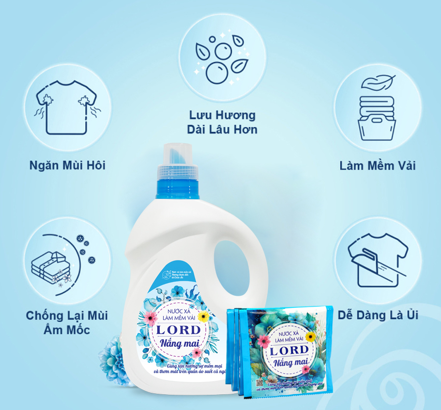 Nước xả làm mềm vải Lord hương nắng mai với hương thơm tươi mát sẽ giúp đánh tan những mùi khó chịu trên quần áo, lưu lại hương thơm trên từng thớ vải, cho bạn tự tin hơn mỗi khi xuất hiện. Lord Hương Nắng Mai cho một ngày mới với ban mai tươi sáng. Đây sẽ là người bạn đồng hành cùng chia sẻ những áp lực trong cuộc sống, giúp người phụ nữ thư giãn và thoải mái hơn.