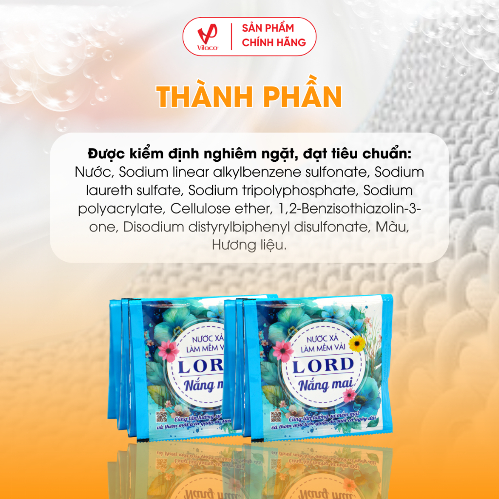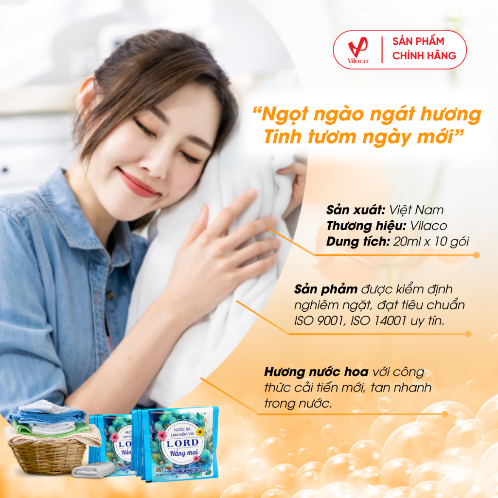 Cùng tận hưởng sự mềm mại và thơm mát trên quần áo suốt cả ngày với nước xả làm mềm vải Lord hương nắng mai