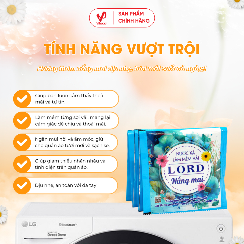 Nước xả làm mềm vải Lord hương nắng mai có ưu điểm gì nổi bật?