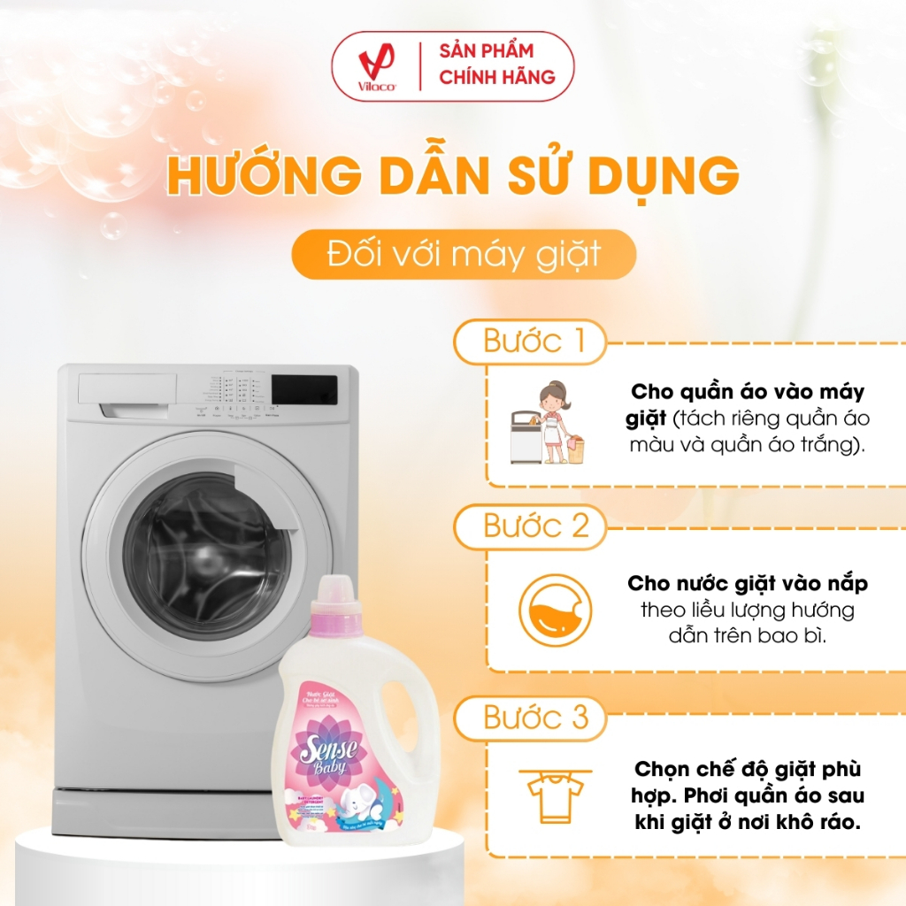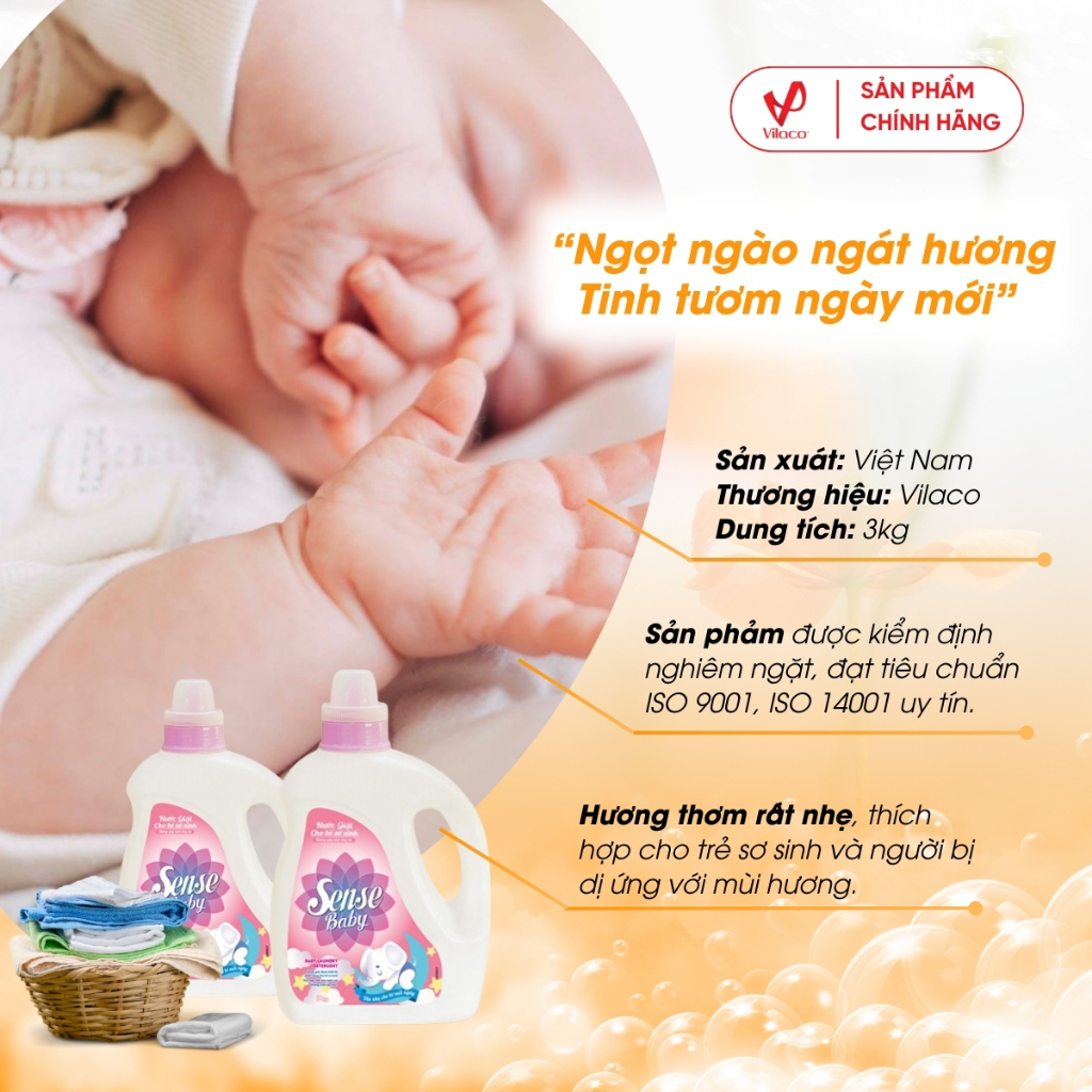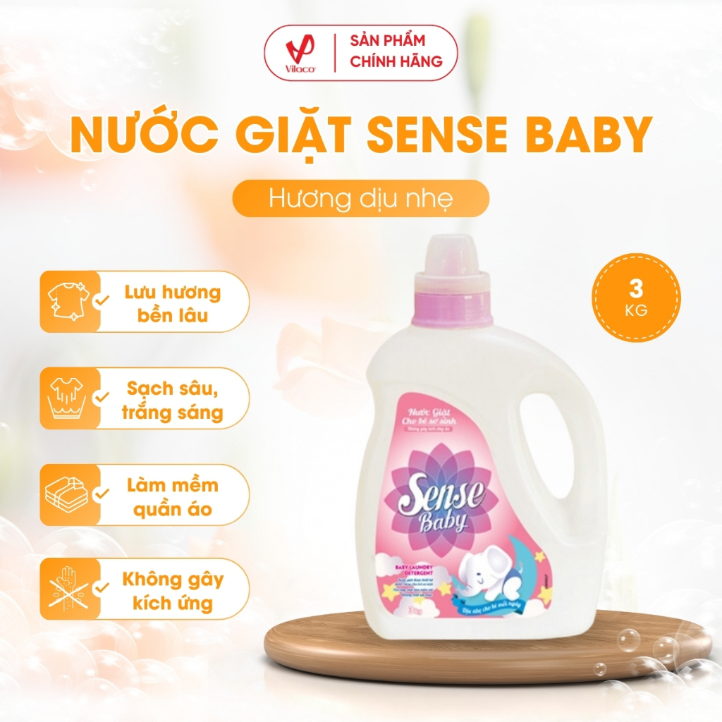 Nước giặt Sense Baby được chế tạo bởi công thức đặc biệt,dành riêng cho bé sơ sinh, giúp đánh bật các vết bẩn và Polyalate sẽ ngăn chặn vết bẩn quay trở lại, không gây kích ứng cho làn da nhạy cảm của bé, vừa an toàn cho da tay của Mẹ.