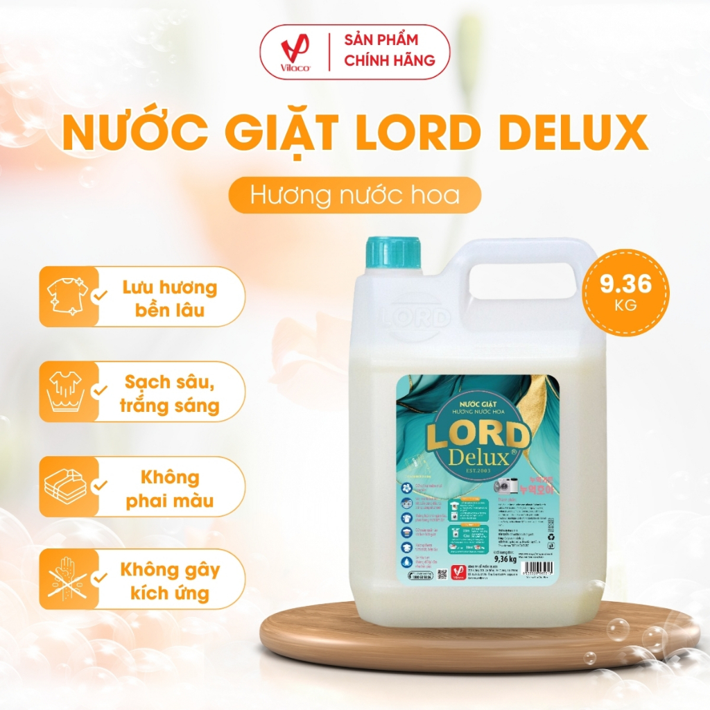 Nước Giặt Lord Delux hương nước hoa 9.36kg hương thơm nước hoa Pháp mang đến sự đẳng cấp và quyến rũ, biến từng bộ quần áo thành một tác phẩm nghệ thuật thời trang.