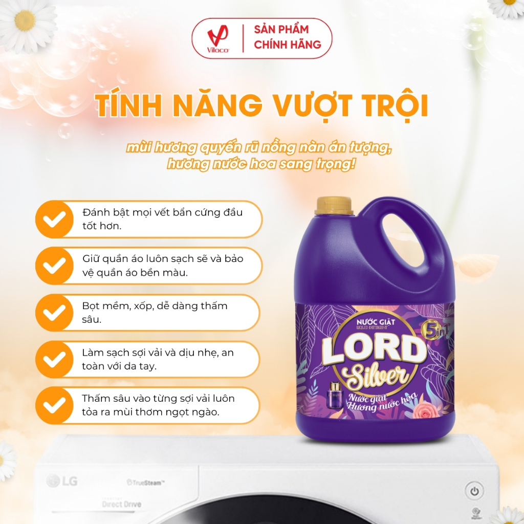 Bạn sẽ thật sự ấn tượng khi lần đầu nghe mùi hương từ áo quần được giặt bởi Nước giặt hương nước hoa Lord Silver. Mùi hương quyến rũ nồng nàn ấn tượng, hương nước hoa sang trọng. Khả năng thẩm thấu từ những hạt hương thấm sâu vào từng sợi vải khiến cho quần áo luôn tỏa ra mùi thơm ngọt ngào. Đặc biệt mùi thời tiết nồm ẩm hay những ngày mưa khó chịu sẽ không còn là vấn đề nữa. Với Lord Siler hương nước hoa, quần áo luôn “Ngọt ngào ngát hương - Tinh tươm ngày mới”, mang đến sự tự tin và ấn tượng khó quên với người đối diện.