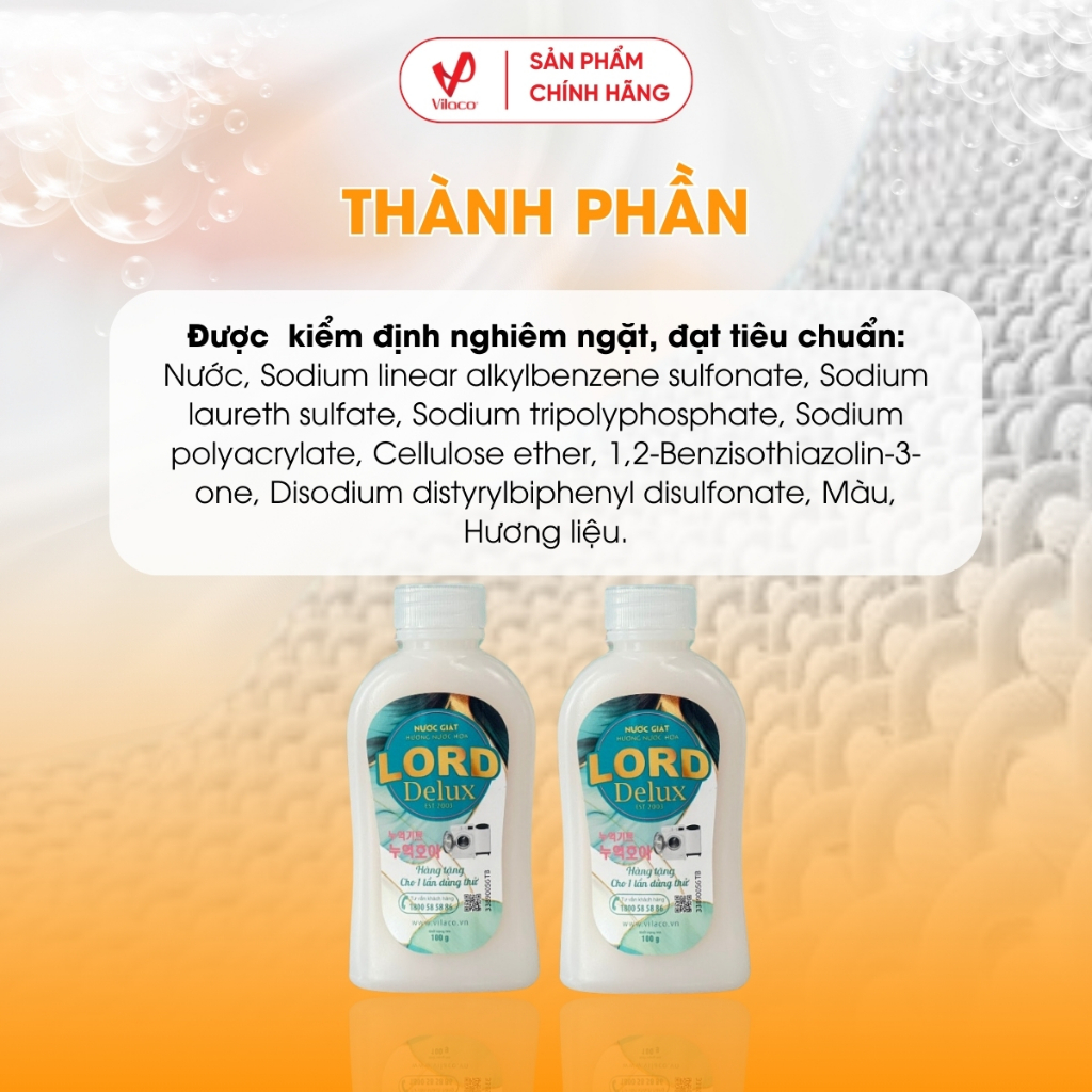 Được chắt lọc từ những nguyên liệu mang hương thơm tinh tế kết hợp cùng công nghệ 3 tầng hương đột phá, nước giặt Lord Delux giúp lưu giữ hương thơm bền lâu suốt ngày dài. Giờ đây, áo quần hay chăn màn không những được giặt sạch mọi vết bẩn mà còn lưu giữ hương thơm cuốn hút dài lâu. Ở nước giặt thông thường hầu hết các hương thơm có trong sản phẩm đều là hoá chất tạo mùi công nghiệp do vậy khi sử dụng trong quá trình phơi khô đối với quần áo các mùi hương sẽ rất dễ bị biến đổi không còn nồng nàn như mùi thương gốc ban đầu. Nhưng ngược lại ở nước giặt Lord Delux với hương thơm tươi mát đặc biệt tạo cho người dùng những trải nghiệm giống như các loại hương nước hoa đắt tiền. Có nước giặt Lord Delux, áo quần sạch khuẩn thơm mềm, vấn vương mãi thôi.