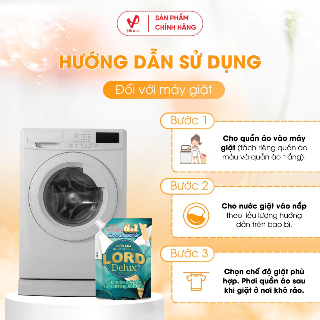 • Giặt máy: Đổ trực tiếp vào khay đựng nước giặt.