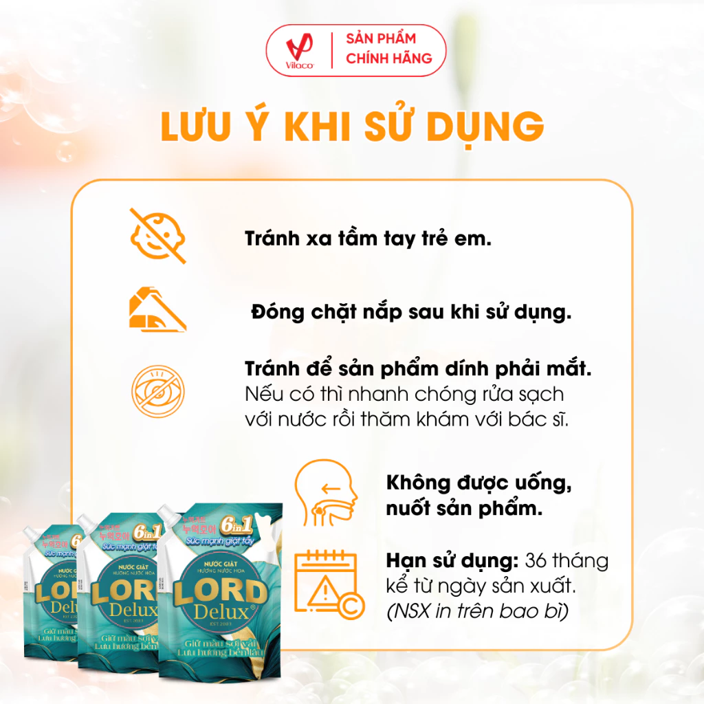 Nước Giặt Lord Delux hương nước hoa 3kg sử dụng công thức màng chắn vô hình lên bề mặt sợi vải, giúp vết bẩn không thể thấm sâu vào sợi vải từ đó có thể dễ dàng làm sạch khi giặt. Ngoài ra sản phẩm này còn giữ màu quần áo cực tốt, giúp quần áo luôn mềm mịn sáng như mới, hương thơm tươi mát có thể lưu lại rất lâu trên quần áo sau mỗi lần giặt.