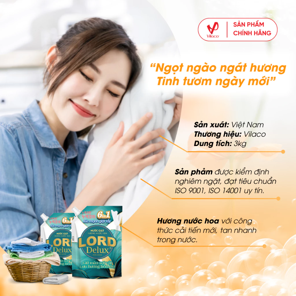 Đưa giặt giũ lên một tầm cao mới với Nước Giặt Xả Lord Delux Hương Nước Hoa Pháp. Sản phẩm là sự kết hợp hoàn hảo giữa công nghệ làm sạch hiện đại và hương thơm nước hoa Pháp tinh tế, mang lại cho quần áo không chỉ sự sạch sẽ vượt trội mà còn lưu giữ hương thơm quyến rũ, sang trọng.
