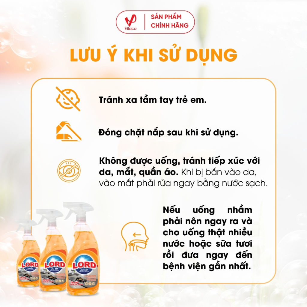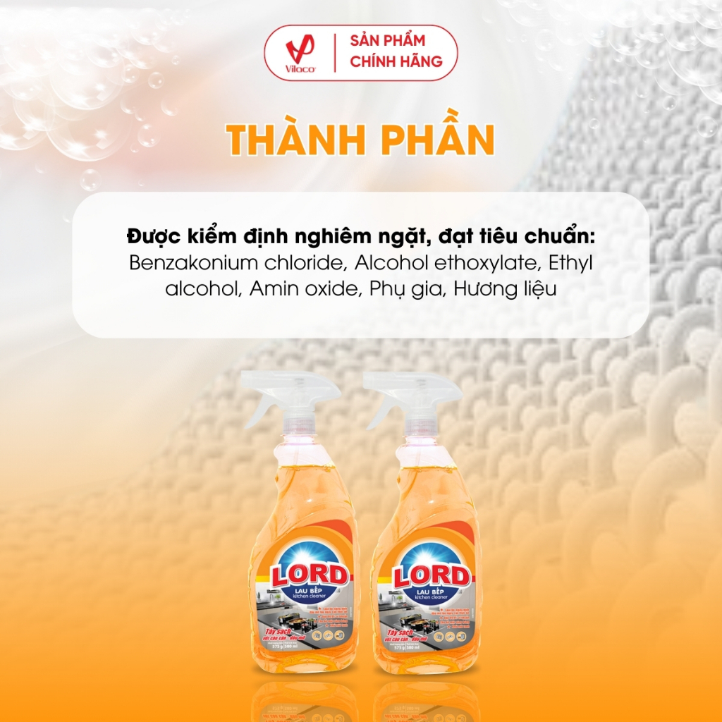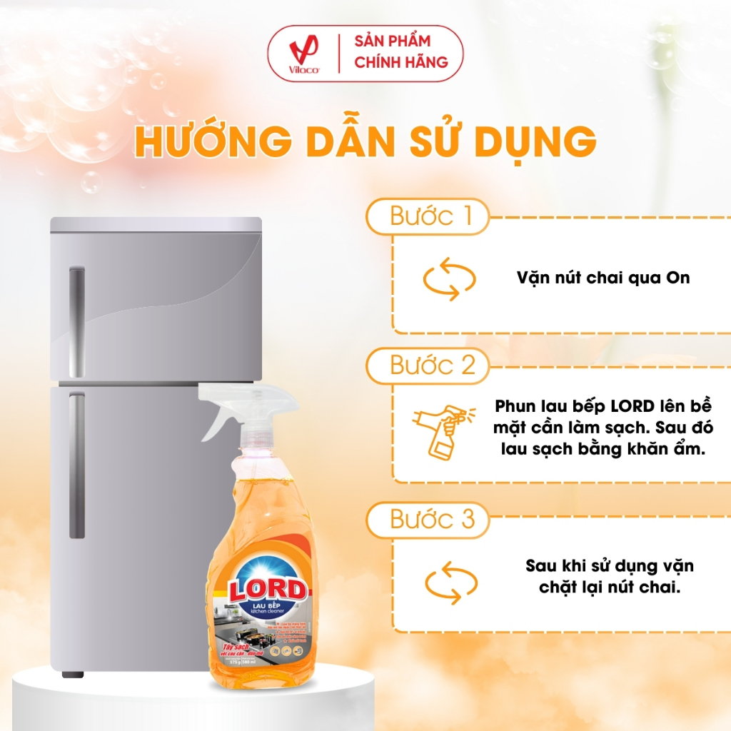 - Phun lau bếp LORD lên bề mặt cần làm sạch.