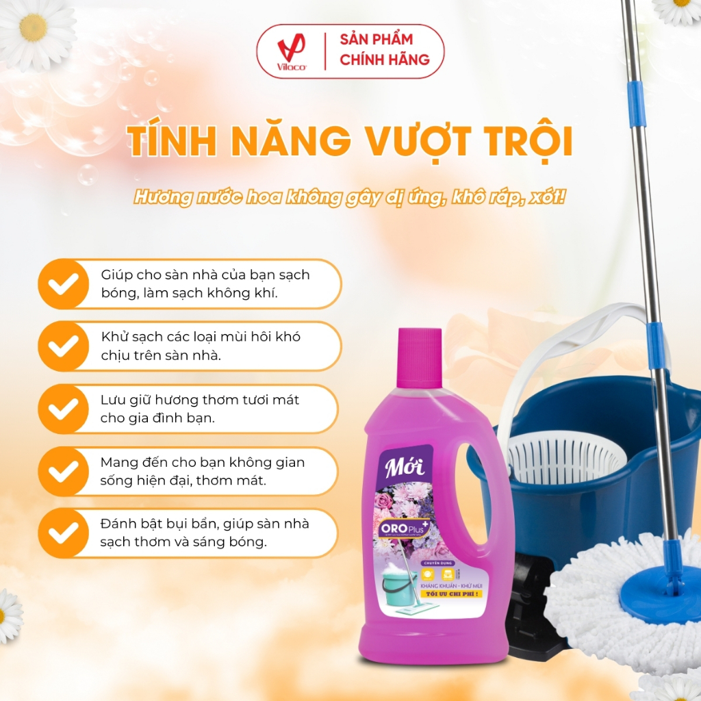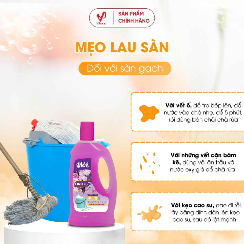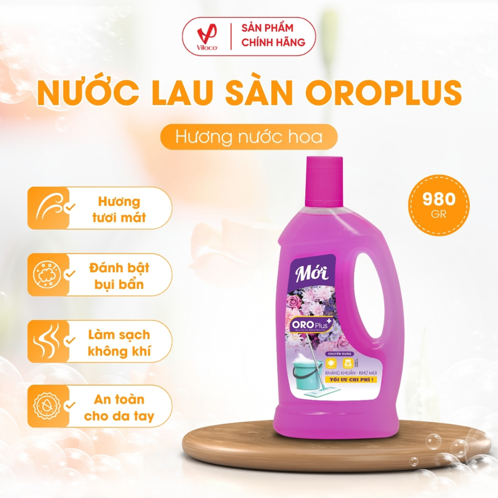 - Nước lau sàn Oroplus hương nước hoa giúp cho sàn nhà của bạn sạch bóng, làm sạch không khí, từ đó bảo vệ sức khỏe cho cả gia đình.