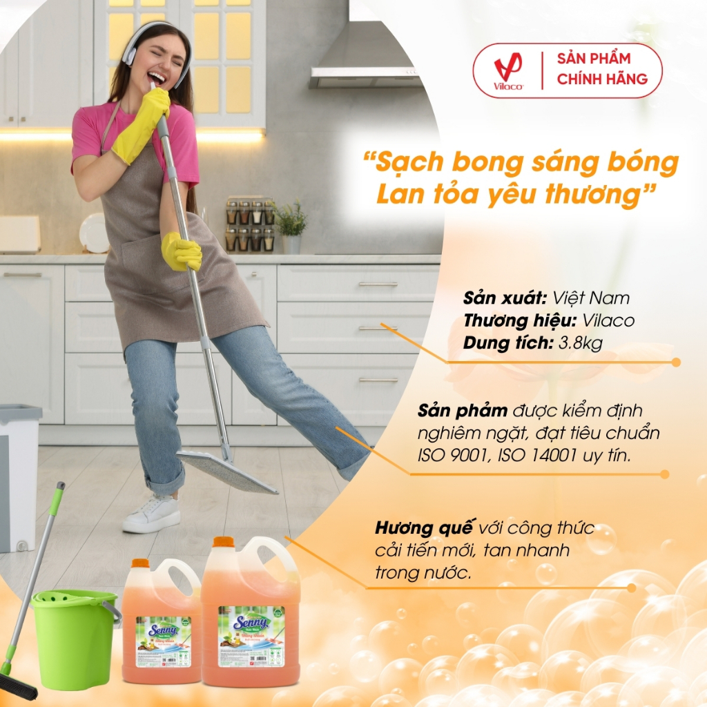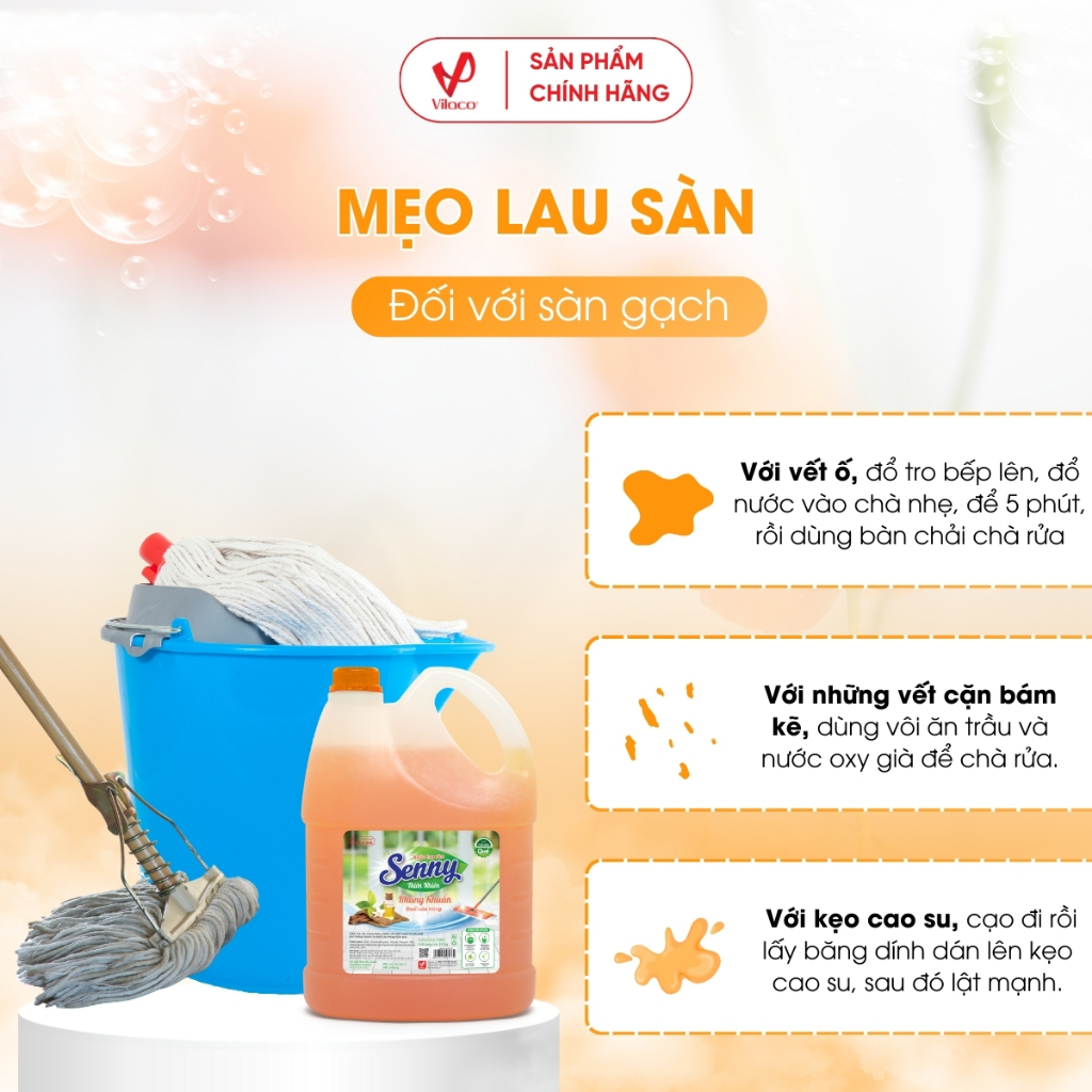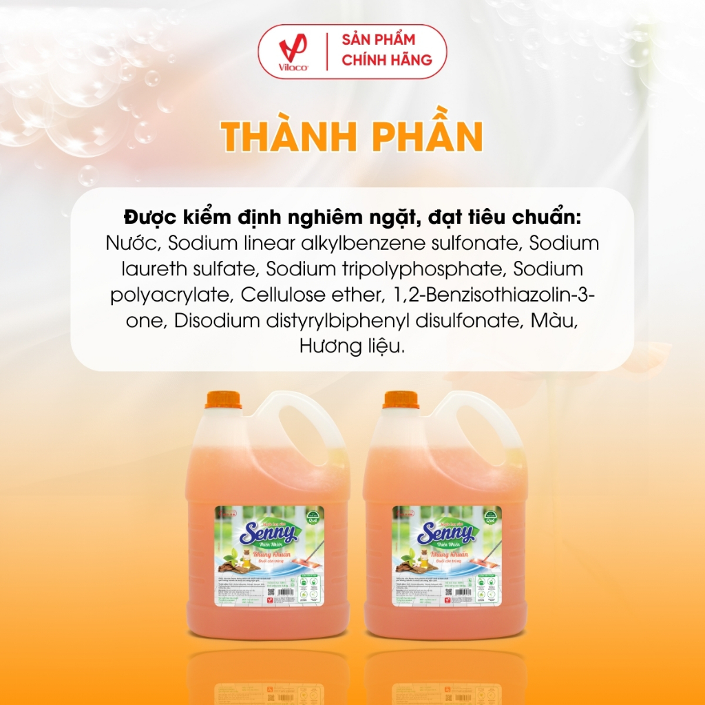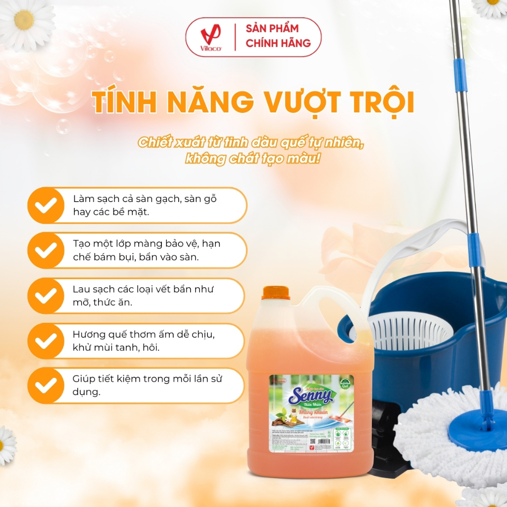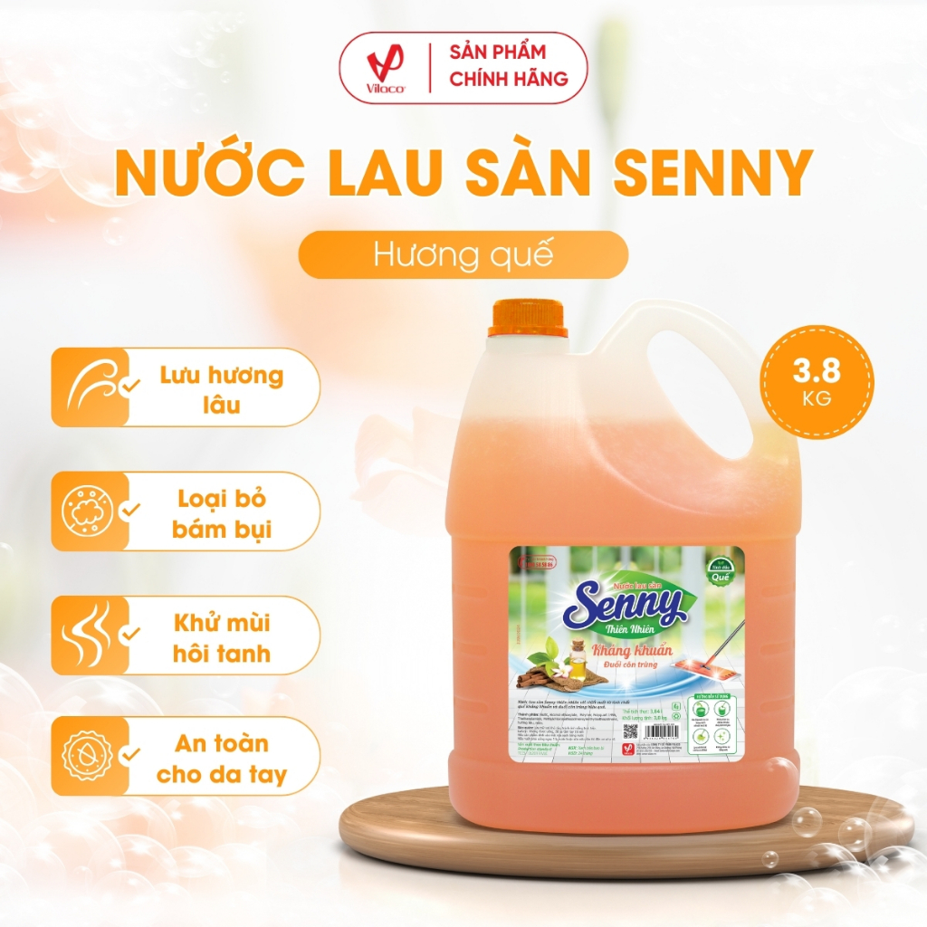 - Nước lau sàn Senny hương quế với công thức hoàn toàn mới, giúp làm sạch bóng sàn nhà, đánh sạch vết bẩn và bụi bám ở mọi ngóc ngách, bảo vệ sức khỏe cho cả gia đình.