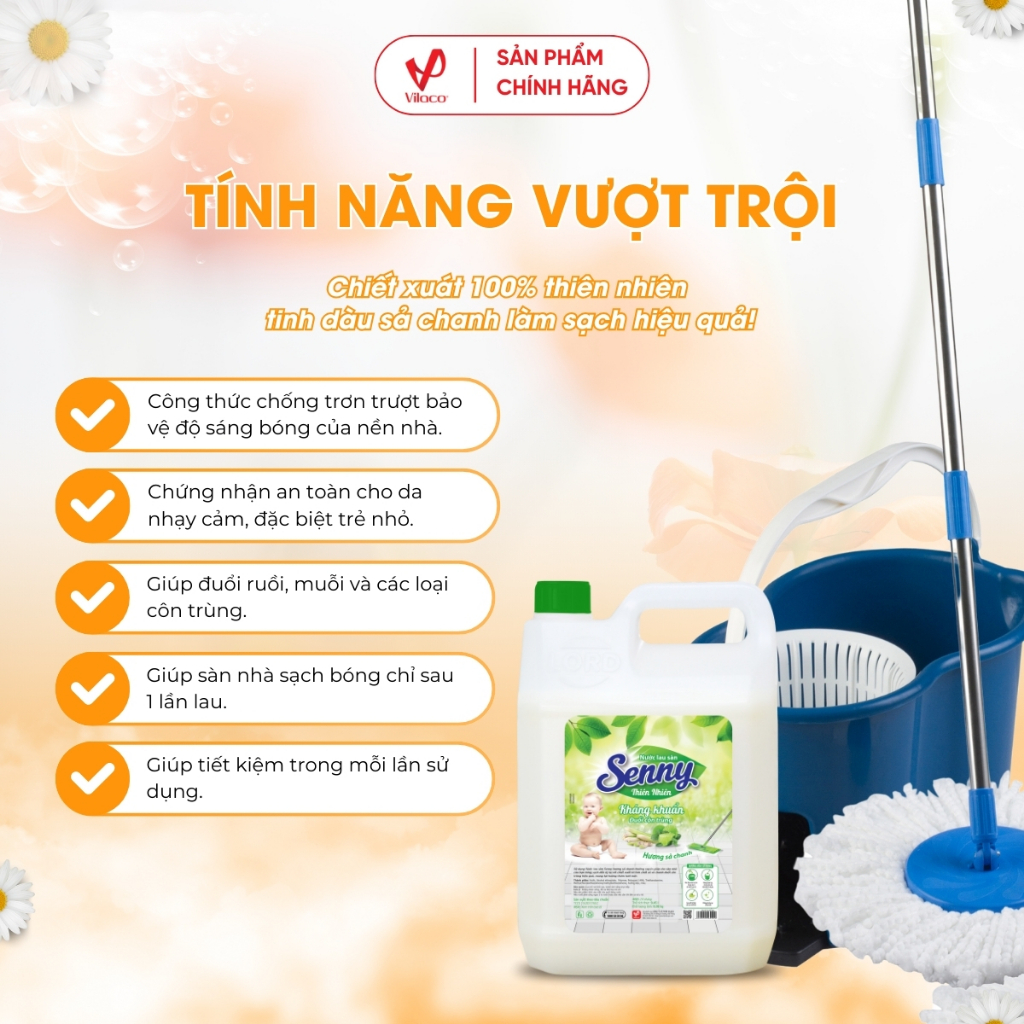 Bạn đang tìm kiếm một sản phẩm lau sàn làm sạch hiệu quả, hương thơm dịu nhẹ và đuổi côn trùng hiệu quả? Senny lau sàn hương sả chanh chắc chắn sẽ không làm bạn thất vọng.Nước lau sàn Senny thiên nhiên hương sả chanh trợ thủ đắc lực cho chị em phụ nữ.