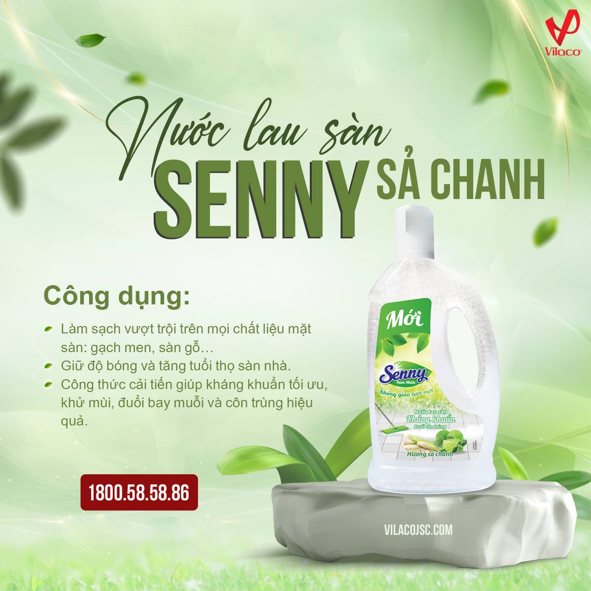 Bạn đang tìm kiếm một sản phẩm lau sàn làm sạch hiệu quả, hương thơm dịu nhẹ và đuổi côn trùng hiệu quả? Senny lau sàn hương sả chanh chắc chắn sẽ không làm bạn thất vọng.Nước lau sàn Senny thiên nhiên hương sả chanh trợ thủ đắc lực cho chị em phụ nữ.