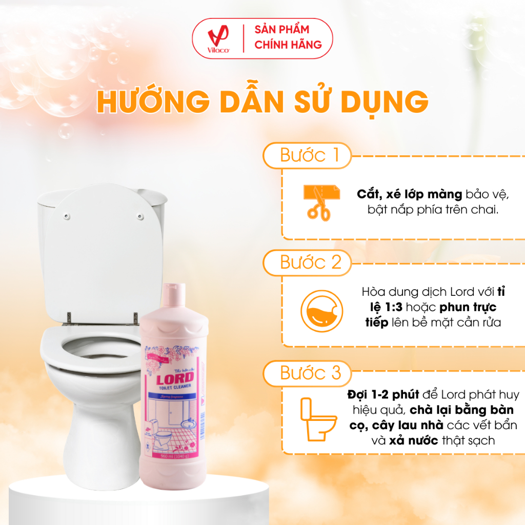 - Nước tẩy bồn cầu Lord Công thức cực mạnh, khử mùi, tẩy các vết ố lâu ngày trên bề mặt men sứ, giúp phòng tắm trở nên sạch bóng, tiết kiệm thời gian. Thích hợp cho gia đình bận rộn.