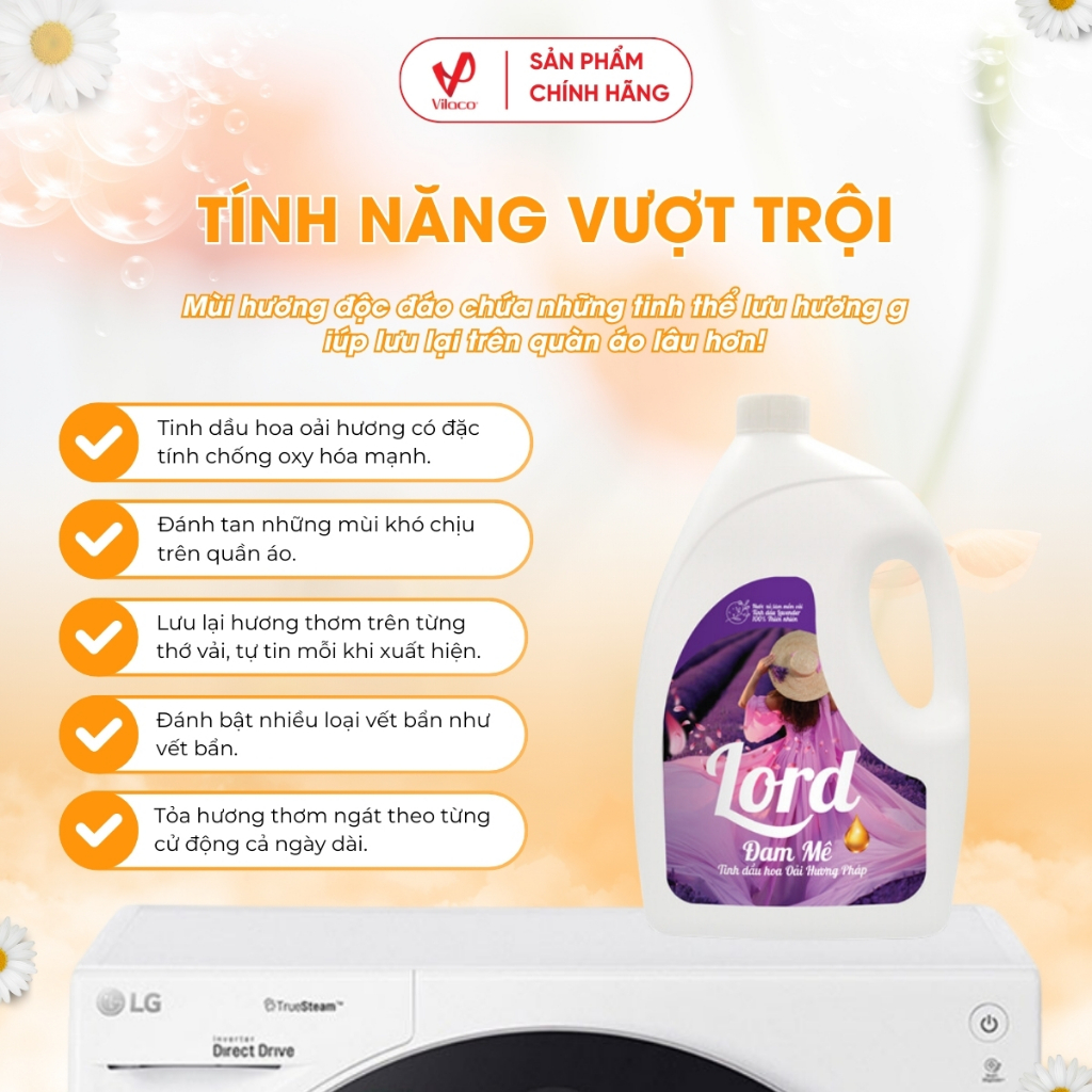 Chỉ bằng một hương thơm quen thuộc nhẹ nhàng lưu trên quần áo nhưng lại có thể trở nên gần gũi và vấn vương mãi không thôi, Lord luôn tự hào cùng người phụ nữ lưu giữ hương thơm dài lâu ấy để lại ấn tượng còn mãi cho những người thương yêu. Nước xả vải Lord tinh dầu hoa Oải hương Pháp được người tiêu dùng rất ưa thích, không chỉ bởi giặt sạch, khử mùi tốt, nước xả làm mềm vải Lord còn được yêu thích bởi mùi thơm rất sang trọng, đặc trưng riêng biệt của hoa Oải hương. Nước làm mềm vải Lord chiết xuất tinh dầu Lavender Pháp 100% thiên nhiên mang đến cho quần áo của bạn sự mềm mại không thể cưỡng lại và hương thơm bám tóa quyện hương bền lâu.