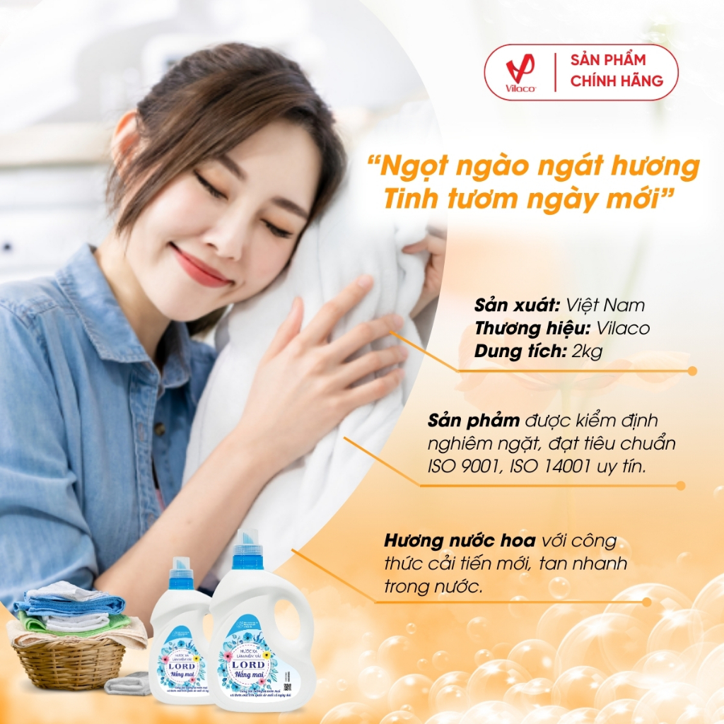 Nước xả làm mềm vải Lord hương nắng mai chống nắng bền màu góp phần giữ màu sắc áo quần luôn mới.