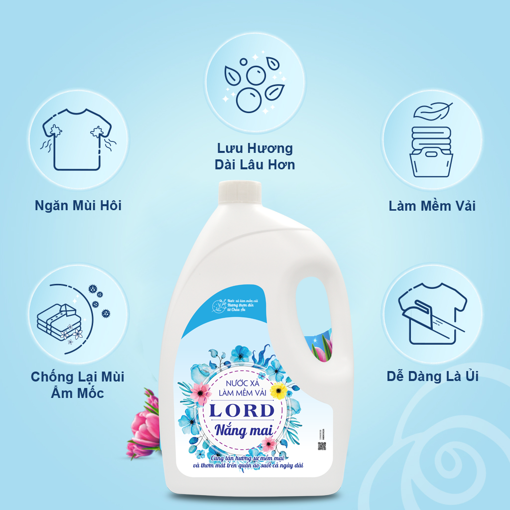 Nước xả làm mềm vải Lord hương nắng mai 3kg với hương thơm tươi mát đến từ châu Âu sẽ giúp đánh tan những mùi khó chịu trên quần áo, lưu lại hương thơm trên từng thớ vải, cho bạn tự tin hơn mỗi khi xuất hiện.