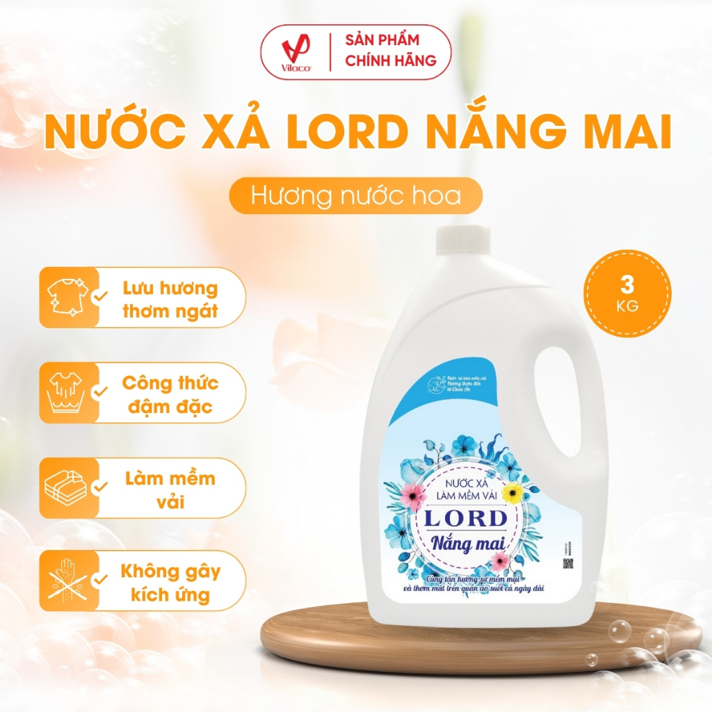 Nước xả làm mềm vải Lord hương nắng mai 3kg sử dụng hương thơm đến từ Châu Âu, kết hợp với công thức đậm đặc đánh bật mùi hôi khó chịu, giúp làm mềm vải nhưng không phai màu quần áo, cho quần áo cả ngày dài thơm mát.