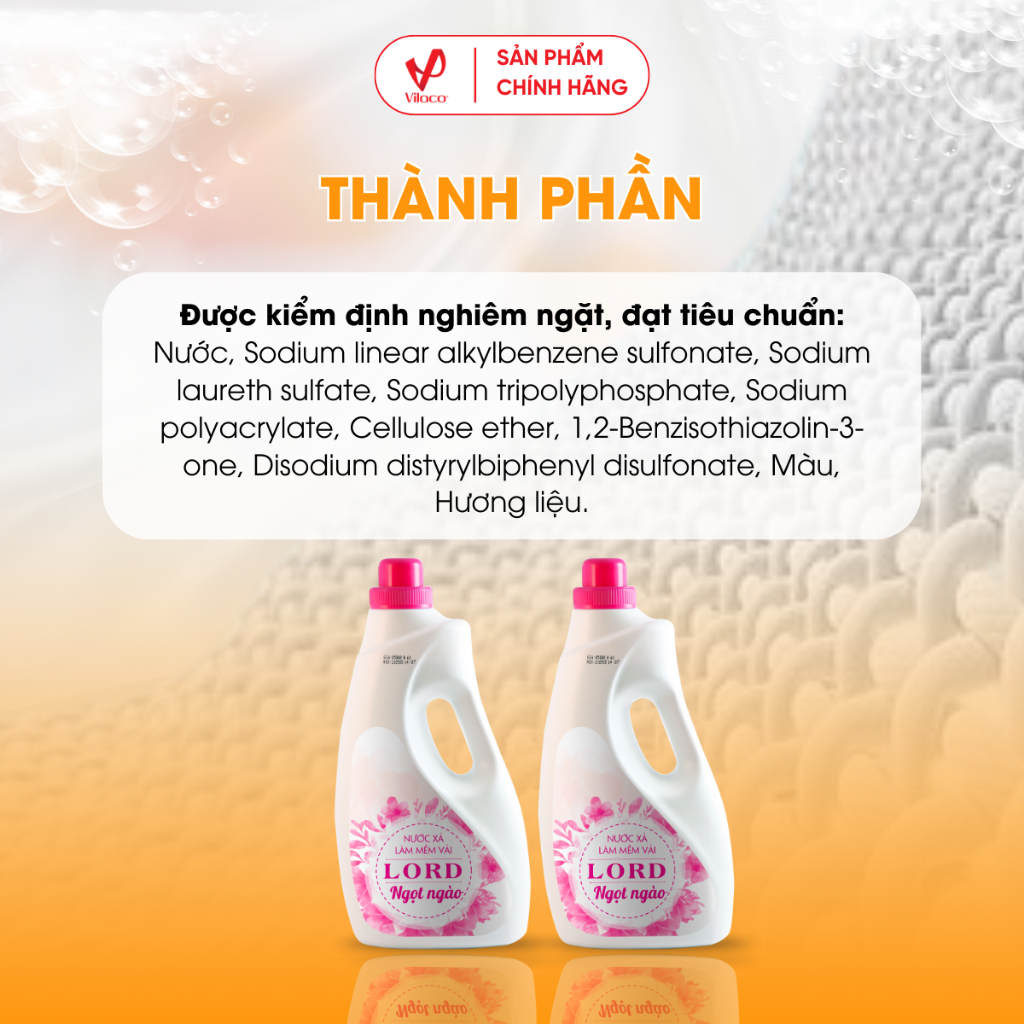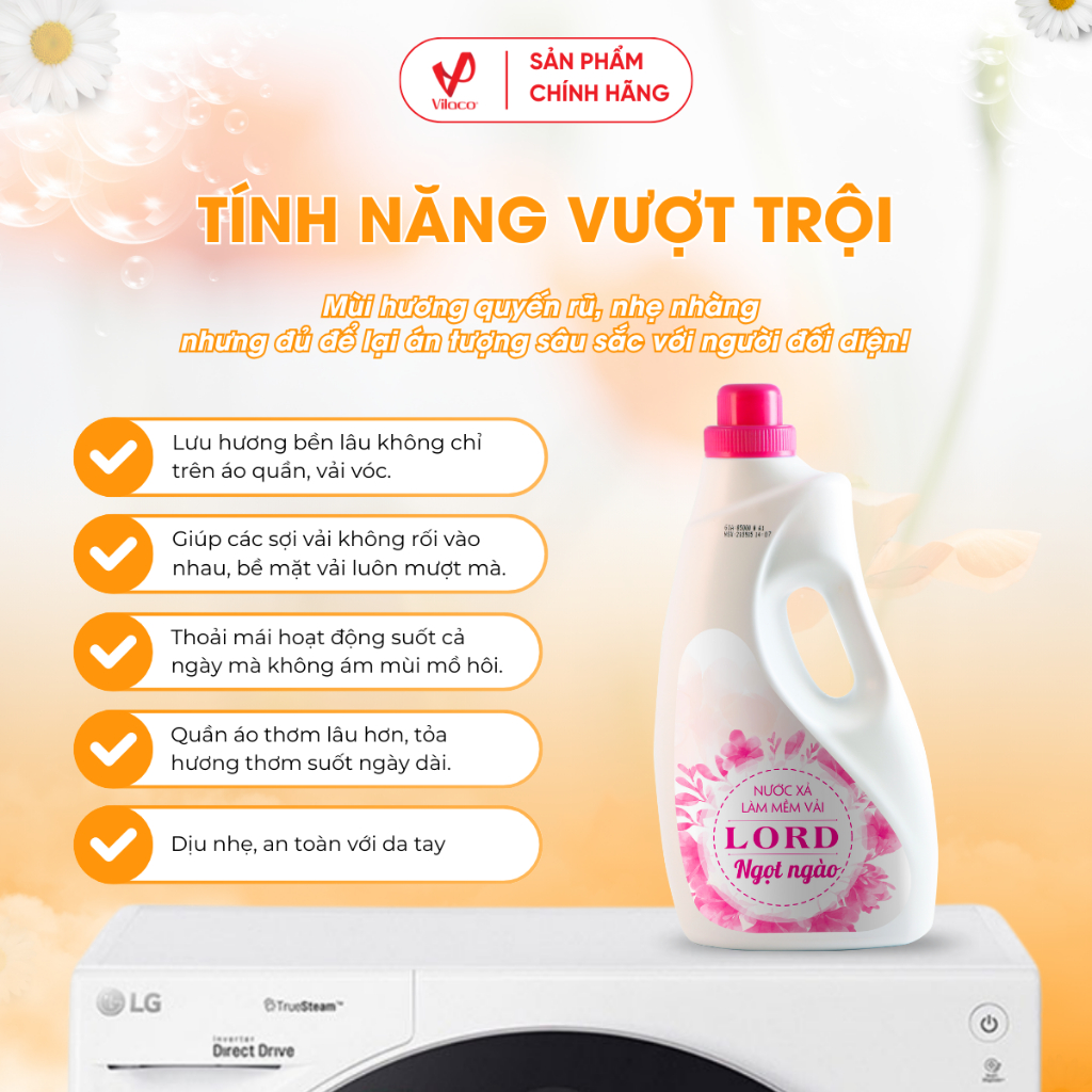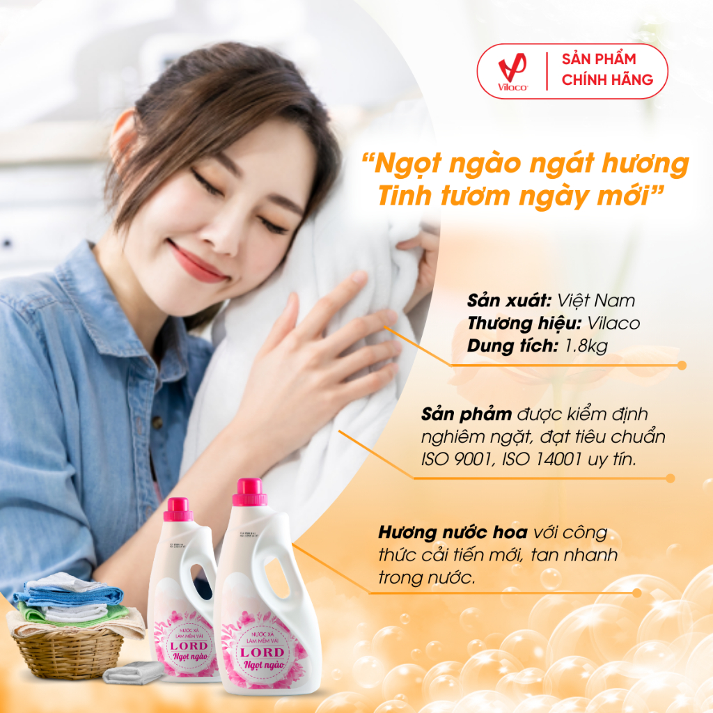 Nước xả Lord hương ngọt ngào với công thức cải tiến giúp các sợi vải không rối vào nhau, giữ cho bề mặt vải luôn mượt mà và dễ là ủi. Nước xả Lord được sản xuất với công nghệ lưu hương hiện đại nhất khiến quần áo của bạn luôn tỏa "hương thơm ngọt ngào đầy tinh tế", giúp bạn thoải mái hoạt động suốt cả ngày mà không sợ ám mùi mồ hôi.