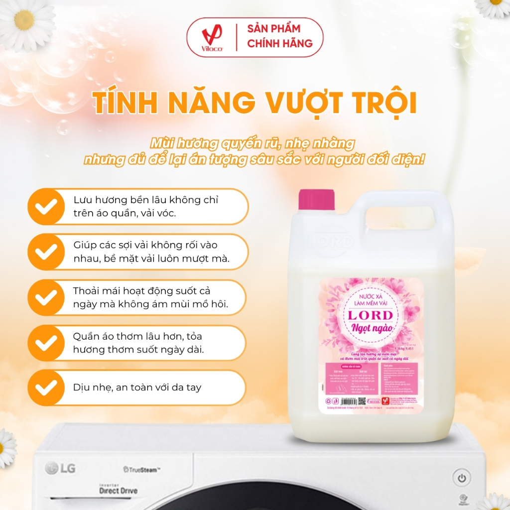 Nước xả Lord hương ngọt ngào với công thức cải tiến giúp các sợi vải không rối vào nhau, giữ cho bề mặt vải luôn mượt mà và dễ là ủi. Nước xả Lord được sản xuất với công nghệ lưu hương hiện đại nhất khiến quần áo của bạn luôn tỏa "hương thơm ngọt ngào đầy tinh tế", giúp bạn thoải mái hoạt động suốt cả ngày mà không sợ ám mùi mồ hôi.