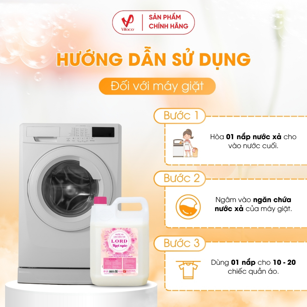• Hòa 01 nắp nước xả Lord cho vào nước cuối hoặc ngâm vào ngăn chứa nước xả của máy giặt.