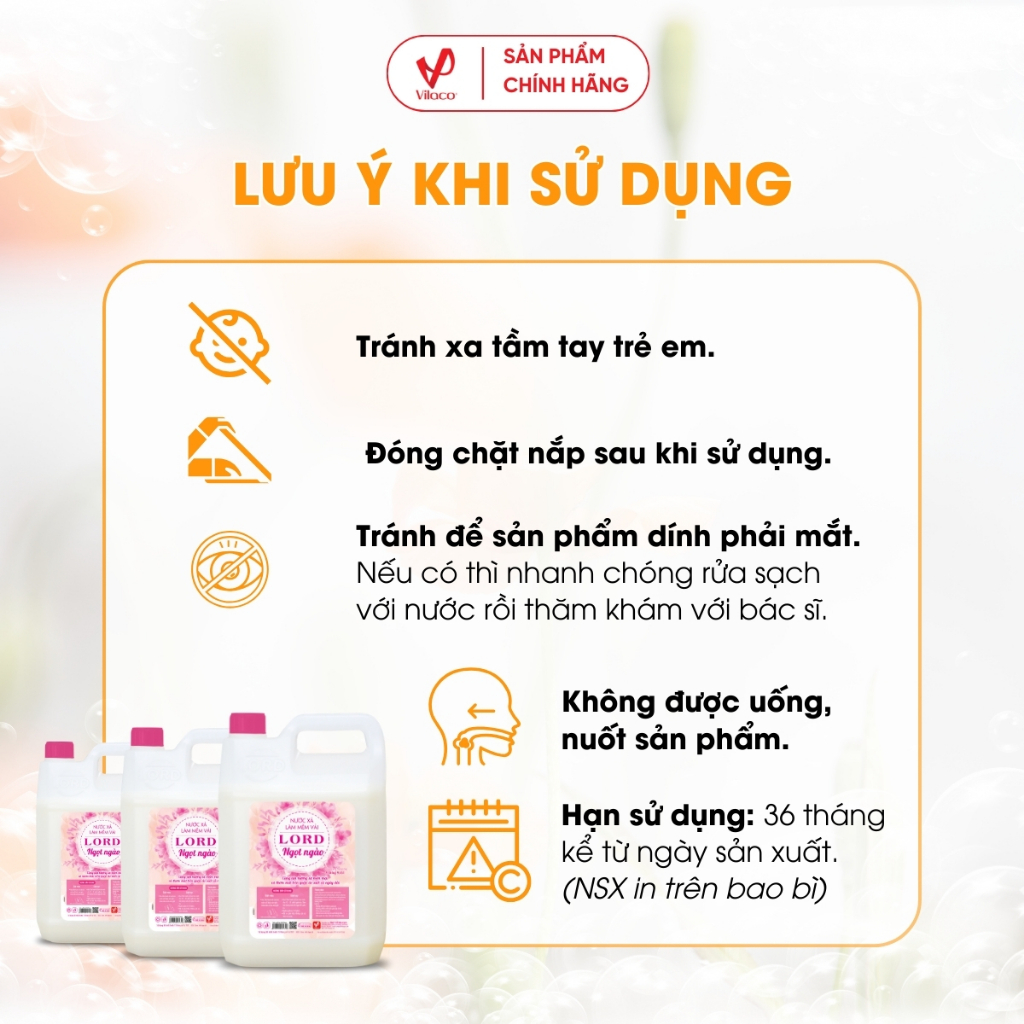 • Hòa nước xả Lord vào lần xả cuối. Dùng 1 nắp cho 10-20 chiếc quần áo. Không đổ trực tiếp lên quần áo.