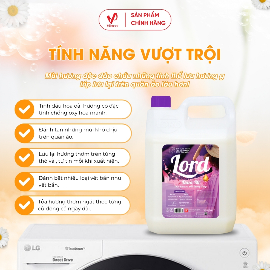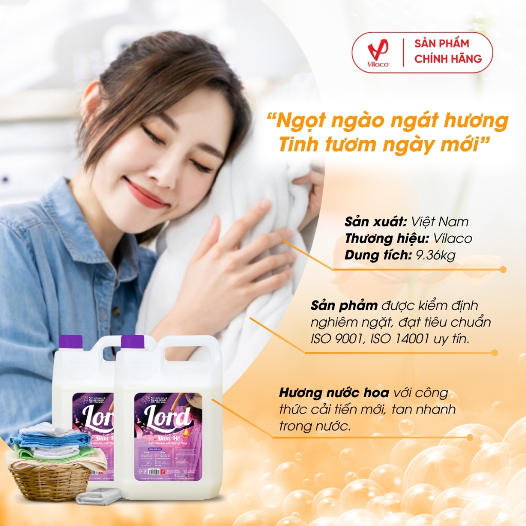 Chỉ bằng một hương thơm quen thuộc nhẹ nhàng lưu trên quần áo nhưng lại có thể trở nên gần gũi và vấn vương mãi không thôi, Lord luôn tự hào cùng người phụ nữ lưu giữ hương thơm dài lâu ấy để lại ấn tượng còn mãi cho những người thương yêu. Nước xả vải Lord tinh dầu hoa Oải hương Pháp được người tiêu dùng rất ưa thích, không chỉ bởi giặt sạch, khử mùi tốt, nước xả làm mềm vải Lord còn được yêu thích bởi mùi thơm rất sang trọng, đặc trưng riêng biệt của hoa Oải hương. Nước làm mềm vải Lord chiết xuất tinh dầu Lavender Pháp 100% thiên nhiên mang đến cho quần áo của bạn sự mềm mại không thể cưỡng lại và hương thơm bám tóa quyện hương bền lâu.